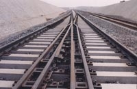 使列車由一組軌道轉(zhuǎn)到另一組軌道上去的裝置。 每一組道岔由轉(zhuǎn)轍器(Railroad switch)、岔心、兩根護軌和岔枕組成,由長柄以杠桿原理撥動兩根活動軌道,使車輛輪緣依開通方向駛?cè)腩A(yù)定進路。林州市飛躍鐵路道岔器材有限公司生產(chǎn)的主要產(chǎn)品有:輕重軌道岔及各種工具,按照行業(yè)有鐵路道岔、煤礦道岔。按種類區(qū)分有:單開道岔、對稱道岔、三開道岔、渡交組合道岔等。另加工各種特殊要求的道岔。